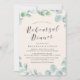 Elegante Einladungen für Proben sind ideal für Hochzeiten im Frühjahr und Sommer. Das Design umfasst einen modernen grünen botanischen Kranz, eine stilvolle Kalligraphie, einen beigen Hintergrund auf der Vorderseite und eine schlaue grüne Farbe auf der Rückseite (ändern Sie die Hintergrundfarbe mit dem Werkzeug Anpassen).