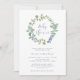 Diese reizende, geschlechtsneutrale Babydusche lädt zu einem sanften, staubigen Kranz mit trendigen grünen Blätter und weichen blauen Beeren ein. Auch die Schriftzeichen im kalligraphischen Stil sind für ein elegantes Aussehen geeignet.