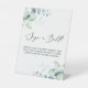 Dieser zarte schwarze Eukalyptus signiert ein Kugelzeichen und ist perfekt für eine moderne Hochzeit. Das romantische minimalistische Design besticht durch eine hübsche und elegante schwarze Typografie mit Eukalyptusgrün.