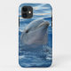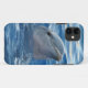 Fotografie des Delphins auftauchend von einem klaren blauen Meer. Elektronische Hüllen und Hülsen.