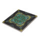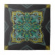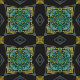 Schwarzer Hintergrund mit einem exquisiten Muster aus Grau, Gelb, Grün und Hellblau. Ein einzigartiges und originelles handgezeichnetes Design von Mary.