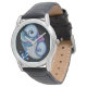 Uhr, Klassische Damenuhr mit schwarzen Lederarmband