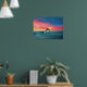 Poster mit Kunstwerken eines verspielten Delphin-Pods, das unter einem schönen Sonnenuntergang im Ozean schwimmt und springen kann (Original KL Stock)
