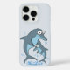 Niedlicher kleiner Cartoon Delphin für Ihr Handy. Phantastisch für jeden, der Delfine Liebe. Klicken Sie auf die Schaltfläche Bearbeiten, um den blauen Hintergrund in eine andere Farbe zu ändern