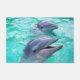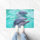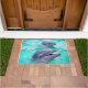 Diese Türmatte hat zwei Delphine, die auf ihr abgebildet sind.