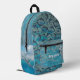 Blaues Wasser und springende Delphine Rucksack für Kinder. Jeder Teil dieses lustigen Rucksacks hat Delphine und / oder Wasser Bilder. Tief blaue Farbe mit einem Platz für seinen, oder sie, Namen auf der Vorderseite, Reißverschluss Tasche in weiß. Ideal, um ein neues Jahr in der Schule zu beginnen oder zum Großelternhaus zu reisen.