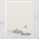Drei Delphine schwimmen und ein schwimmendes Pelikanbild auf diesem Letterhead Paper.