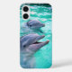 Dieser Telefonkoffer hat zwei Delphine, die darauf abgebildet sind.