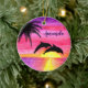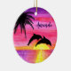Denken Sie an den Strand, der das ganze Jahr über mit diesem Gemälde von Delphinen zu sehen ist, die einen tropischen Sonnenuntergang genießen. Personalisieren Sie Ihre Daten mit einem Namen, einem Datum oder einer Nachricht. Ein wunderschöner Weihnachtsschmuck für Strandliebhaber.