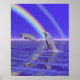 Poster mit meinem Original-Kunstwerk von zwei niedlichen Delphinen, die aus dem Wasser springen und einen Regenbogen verfolgen.