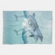 Delphine, die im Meer schwimmen und Delfine mit Wasserfarbe aufweisen.