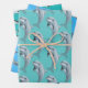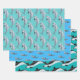 Dolphin Packpapier, in drei Designs und Farben, bedruckt auf drei großen Blättern, die rollen, nicht gefaltet. Blau, Türkis und Lagunengrün sind in verschiedenen Delfinarten zum Schwimmen geeignet. Die Designs sind perfekt für jedes Geburtstagsfest oder Sommergeschenk Party.