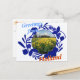 Delft Blue Pattern und Tulip Bulb Fields Grüße von Holland Postcard. Altes holländisches Delft Blue (Delfts Blauw)-Muster mit vollständig anpassbarem Holland-Bild (ändern und hochladen Sie Ihr eigenes Bild!), gelbe Tulpenlandschaft mit Windmühle und vollständig anpassbarem Text "Greetings from Holland" Andenkarte. Dieses schöne persönliche Holland tulips Postcard Geschenk ist vollständig anpassbar, fügen Sie Ihr Bild und Text!