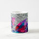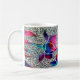 Delikate orientalische Lotus Blume Original Art Coffee Tasse. Verführerische Lotus-Blume, umgeben von spielerischen, freistehenden Armbändern auf einer durchsichtigen, weißen Oberfläche. Die Gestaltung ist handgemalt in Acryl, lila, pflaumenfarben, dunkelrot, ponig und türkisfarben, mit einem milchigen Weiß. Es ist ein Rätsel für einen leidenschaftlichen Betrachter, ein Kunstliebhaber, der eine endlose Geschichte hinter dem Design schätzen wird. Dieses Originalgemälde wurde von der Künstlerin Aleksandra Grbic Hrustic gemacht. Copyright, alle Rechte vorbehalten. Diese farbenfrohe Tasse ist der ideale Begleiter für den Morgenkaffee.