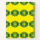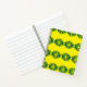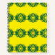 Ein stilvolles Hardcover-Notebook mit einer lebhaften gelben Abdeckung und einem fett grünen geometrischen Muster. Enthält Graphpapier und eine schwarze Spiralbindung. Ideal für Noten, Skizzen oder Planungen.