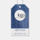 Moderne bearbeitbare Vorlage, um Ihr eigenes Logo hier hinzuzufügen und es zu markieren, Ihr eigenes, Dieses coole Logo-Template-Design hat den Logo-Platzhalter gegen ein denim blau, Jeans wie Textur-Grafik. Das Thema des denim blauen wird in den beiden Texten des benutzerdefinierten Textes an der Basis des Designs mit einem weißen Hintergrund wiederholt. Einer ist in einem Schriftart im Skriptstil, der andere in einem moderneren Stil. Die Rückseite des hängenden Tags ist mehr von den Denim jean blau.