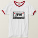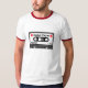 Demo-Band-Design-T - Shirt auf Basis einer alten Kompaktkassette. Auf einem roten Ringer-T - Shirt.