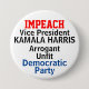 Impeach ist in rotem Text geschrieben. Demokrat ist in blauer Schrift für ihr Party geschrieben. Wurde am 20. Januar 2021 vereidigt, U.S. V.P. Schauen Sie sich die Fakten an, dass ihr Vater jamaikanischer Staatsangehöriger ist und ihre Mutter aus Indien stammt, weder eine eingebürgerte US-Staatsbürgerin noch eine rechtmäßige Staatsbürgerin zum Zeitpunkt von Kamalas Geburt im Jahr 1964, also wie kann sie eine natürliche geborene Staatsbürgerin der amerikanischen Verfassung frage.