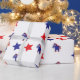 Roter, weißer und blauer Demokrat-Esel mit Sternen auf weißem nahtlosem Packpapier.