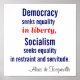 "Die Demokratie weitet die Sphäre der individuellen Freiheit aus, der Sozialismus beschränkt sie. Die Demokratie misst jedem Menschen allen erdenklichen Wert bei; der Sozialismus macht jeden Mann zu einem bloßen Agent, einer bloßen Zahl. Demokratie und Sozialismus haben nichts gemeinsam, außer einem Wort: Gleichheit. Aber bemerken Sie den Unterschied: Während die Demokratie Gleichheit in Freiheit sucht, strebt der Sozialismus Gleichheit in Zurückhaltung und Knechtschaft an."