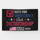 Ein Wahlkampfschild, das Kamala Harris für die Präsidentschaftswahlen 2024 befürwortet, die Bedeutung der Demokratie gegenüber der Diktatur betont und eine Haltung gegen Trump einnimmt. ermutigt dazu, für eine bessere Zukunft blau zu stimmen.