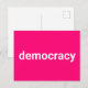 Demokratie minimalistische moderne Typografie heißen rosa Postkarte. Vollständig anpassbarer weißer Text auf heißen rosa bearbeitbaren Farbhintergrund.