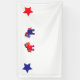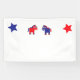 Der demokratische Esel illustriert in Rot, Weiß und Blau mit Sternen auf weißem Banner.