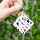 Dieser Schlüsselanhänger wird mit einem US Flagge-Kunstdruckdesign mit demokratischem Text gezeigt. Passen Sie dieses Objekt an oder kaufen Sie, wie es ist.