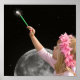 Kleines Mädchen malt einen Stern am Nachthimmel.