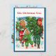 Diese sehr helle und farbenfrohe Weihnachtsfeier erinnert einen an ihre Jugend, wenn wir glückliche, fröhliche Kinder sehen, die den Weihnachtsbaum nach dem Schneiden im Wald wieder auf Zuhause bekommen.
