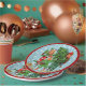 Weihnachtspapier-Teller mit glücklichen, fröhlichen Kindern, die den Weihnachtsbaum nach dem Schneiden im Wald wieder auf Zuhause bekommen. Ideal für Feierlichkeiten!