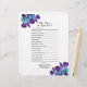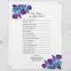 Sie können dieses lila und türkisblaue Dendrobium Orchideenspiel Brautparty "Wer kennt die Braut am besten" personalisieren. Sie können den Text mit den Optionen personalisieren ändern. Einfaches Brautparty-Spieldesign mit einer wunderschönen Orchideenart, dem blauen Dendrobium. Es ist aquamarin / türkis in Farbe gepaart mit violett und königlich lila. Eine großartige Blume für das Pfau Brautparty Farbthema.