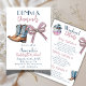 Moderne Denim und Diamonds Letzte Disco oder finale Fiesta Bachelorette Weekend Party Akryllische Einladung mit Cowboy Denim Stiefel und eifersüchtig rosa Bogen.