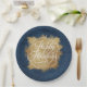 Happy Holidays in schicken weißen Schriftzeichen auf einem Splash von Imitaten Goldfolie auf einem denim blauen Hintergrund, sind diese Papier-Teller auch mit Ihrem Namen personalisiert. Ideal für Ihre Zuhause oder Geschenke als Geschenke. PASSENDE Servietten und weitere Designs in unserem Geschäft.