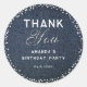 Eine einfache, moderne, elegante und schicke Geburtstagsparty oder jede andere Veranstaltung danke Ihnen Aufkleber-Vorlage mit einem denim Hintergrund, das Wort "YOU" in Nashörnern (simuliert, nicht echte Steine) und in der modernen Kalligraphie-Skript, und Typografie in Weiß. Ein schicker "Denim and Diamonds"-Design für eine Frau jeden Alters, am 21., 30., 35., 40., 50., 55., 60., 65., 70., 80. oder 90. Geburtstag, für ein Denim- und Diamanten-Brautparty usw.!