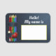 Denim, farbige Bleistifte und rote Herz-Lehrer Namensschild
