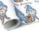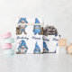 Niedliche Denim Aquarellnome mit Hund und flauschiger Katze.
