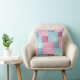 Ein hübsches Throwkissen oder -kissen, mit einem Imitatpatchwork des rosa und blauen Denimmusters, von einem handgemalten Wasserfarbeentwurf durch Judy Adamson. Das Muster auf den Rückseitenkoordinaten aber ist nicht identisch.