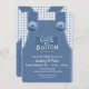 Niedlich als Knopfduscheinladung, niedliche Dim-Overalls mit blauem Gingham-Shirt und Lollipop in der hinteren Hosentasche, Baby-Duscheinladung. Ideal für Bauernhofthemen oder rustikale Babyduschen.