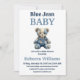 Denim Patchwork Bear Boy Blue Jean Baby Shower Einladung
