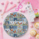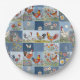 Denim Patchwork mit Hühnern und Wildblumen Pappteller
