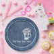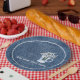 Dieses Design hat einen blauen, denim Hintergrund, mit einer Vase von Daisys in der unteren rechten Ecke. Es gibt einen Bereich unten, wo Sie Ihren eigenen Text hinzufügen können, um das Design für jedes Party oder Anlass anzupassen.