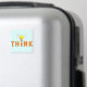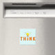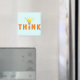 Ein einfaches Design, das "Denken" mit einer Glühbirne sagt, die den Buchstaben "I" in Gelb und Orange dotiert. Es gibt wache Linien um die Birne herum, die wohl Albert Einsteins unsauberes Haar darstellen könnten.