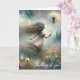 Ein junges Mädchen mit fließendem Haar wird dargestellt, wie es durch ein Feld läuft, das einen großen Kronleuchter im Monet-Kunstwerk-Stil hält, um an Sie zu denken. Alle Texte können geändert werden.