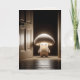 Eine neugierige, pilzköpfige Kreatur steht in einer Tür und wirft ein warmes Licht in den dunkel beleuchteten Raum. Alle Texte können geändert werden.