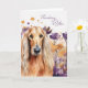 Ein Gedanke an Sie grüßen für Hundeliebhaber und besonders diejenigen, die afghanische Hunde lieben. Eine Illustration einer Blumenwiese in lila Farbtönen paart mit einer lustigen Botschaft.