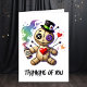 Eine lustige Freundschaftskarte für Liebhaber von trockenem Spaß. Mit einer Voodoo-Puppe, Buttone und so weiter und der freundlichen Formulierung "Denken Sie an Sie".