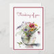 Eine Aquarellillustrierung hübscher rosa, roter, weißer und gelber Blumen in einer Glasvase. Diese botanische Illustrationskunst ist perfekt für eine einfache Begrüßung, aber Sie können den Text zu Ihrem bevorzugten Gruß ändern. AI unterstützte Grafik, die mit kommerziellem Einsatz erworben wurde. Kunstwerk: DreamCafeArt
