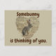 Dieses Naturschauspiel vereint einen bezaubernden wilden Wüstenhasen, der in einem großen Herzen auf dieser Postkarte sitzt, auf der man an dich denkt. Das braune Kaninchen mit seinen langen Ohren ruht sich auf einem Schmutzweg. Die große Herzform umgibt das wilde Tier und schafft so ein niedliches Bild, um den Bauch "Somebunny denkt an dich" zu begleiten. Die Rückseite dieser Postkarte ist leer, sodass Sie viel Platz haben, um mit Text oder Fotos zu personalisieren. Original Foto - C. McGouldrick