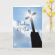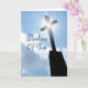 Original berufliches Farbfoto mit Silhouette eines Kirchenkreuzes mit strahlender Sternenwirkung stehend hell gegen den blauen Himmel und die weißen Wolken. "Thinking Of You" Skript ist auf der Vorderseite geschrieben und "Dein Text Hier" ist auf der Innenseite, um leicht anpassen oder löschen, um Ihre Nachricht später handschreiben. Ideal für eine besondere Christliche Veranstaltung wie Taufe, erste Kommunion, Bestätigung, Osterfeier oder Totenfeier. Eine wunderschöne, inspirierend, nachdenkliche und symbolische religiöse Grußkarte, besonders nett für jeden Priester, Pfarrer, Nonne oder Geistlichen sowie für jeden Freund oder Familienmitglied in Zeiten des Verlustes oder spirituellen Bedürfnisses, um ihnen lassen, dass du in ihren Gedanken und Gebeten bist.